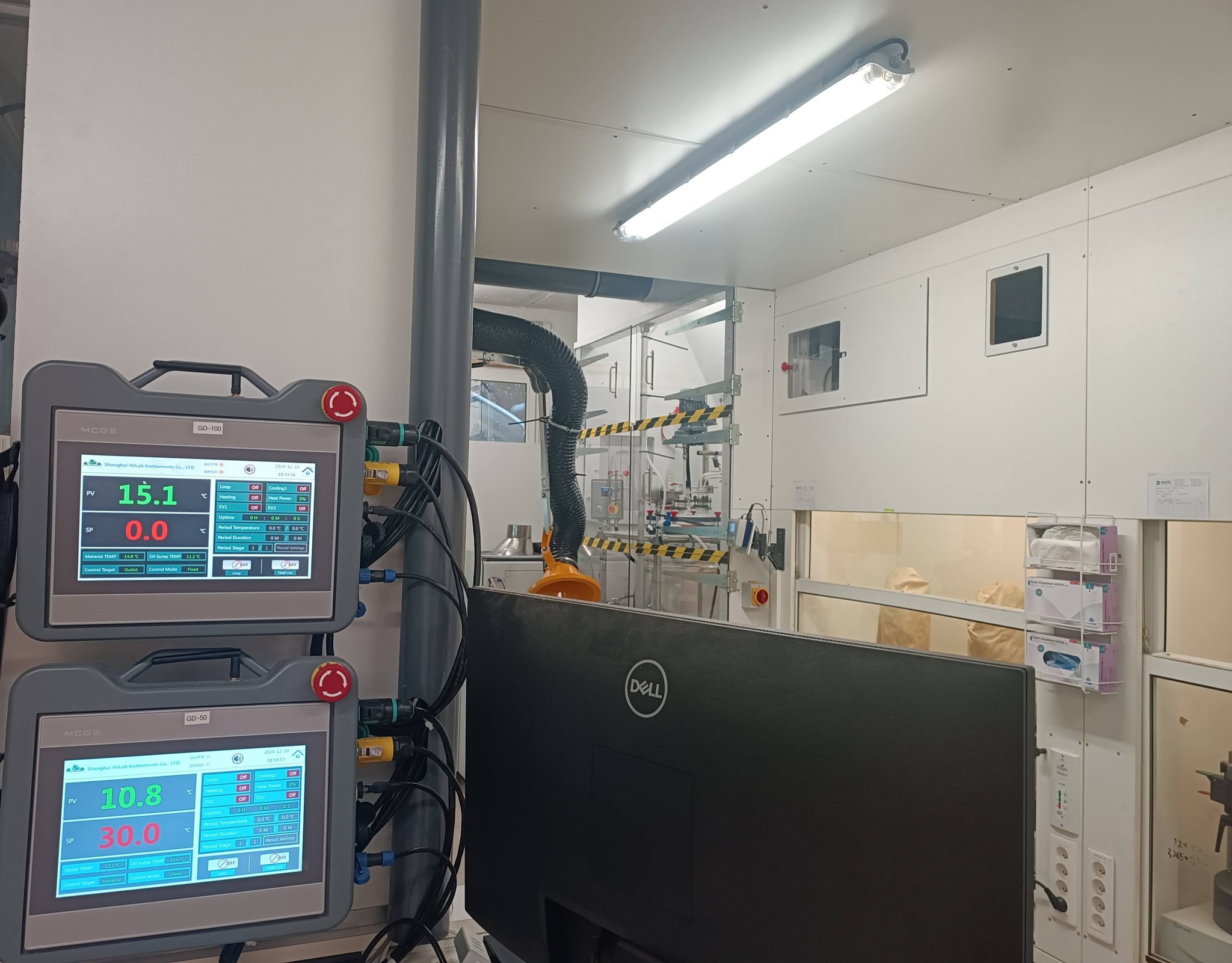 L’ensemble des réacteurs de production (10, 20, 30 et 80 Litres) est piloté par un système d’automatisation. L’affichages des paramètres monitorés est librement configurables sur le PC d'exploitation via le logiciel LabVision® via l’interface compacte LabBox®.