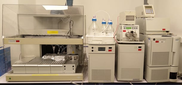 Cet appareil nous permet aussi d’élargir notre offre de service en proposant des prestations d’analyse et de dosage de composés en fonctionnement analytique ainsi que la possibilité de purifier des composés en fonctionnement semi-préparatif.