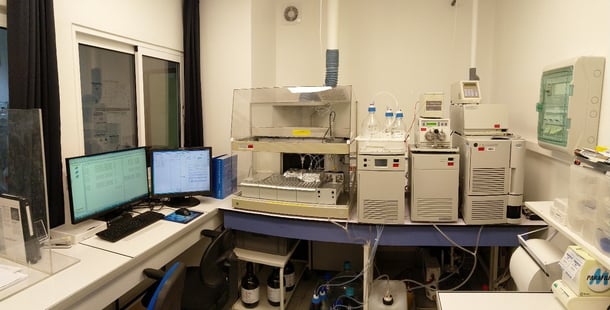 Nos locaux sont en outre équipés pour travailler à l’abri de la lumière naturelle sous lumière inactinique ce qui autorise la manipulation de produit photosensible en toute sécurité.
